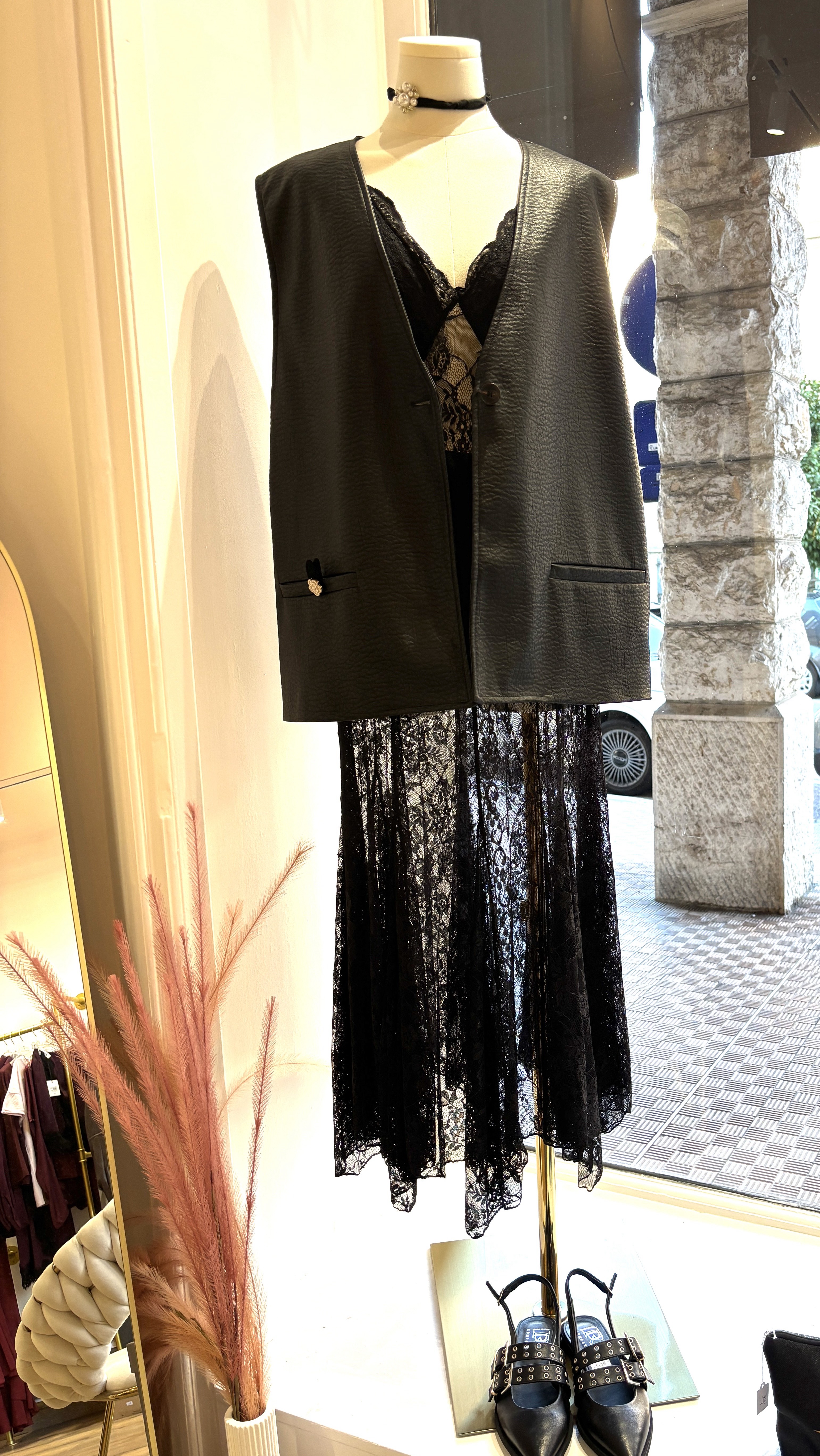 Look du jour 🎉! 🍁Nouvelle collection 🍂 Un look féminin, audacieux et contrasté, parfait pour une soirée chic ou un événement mode. Le mélange entre la dentelle romantique et le similicuir contemporain crée une silhouette à la fois douce et affirmée.